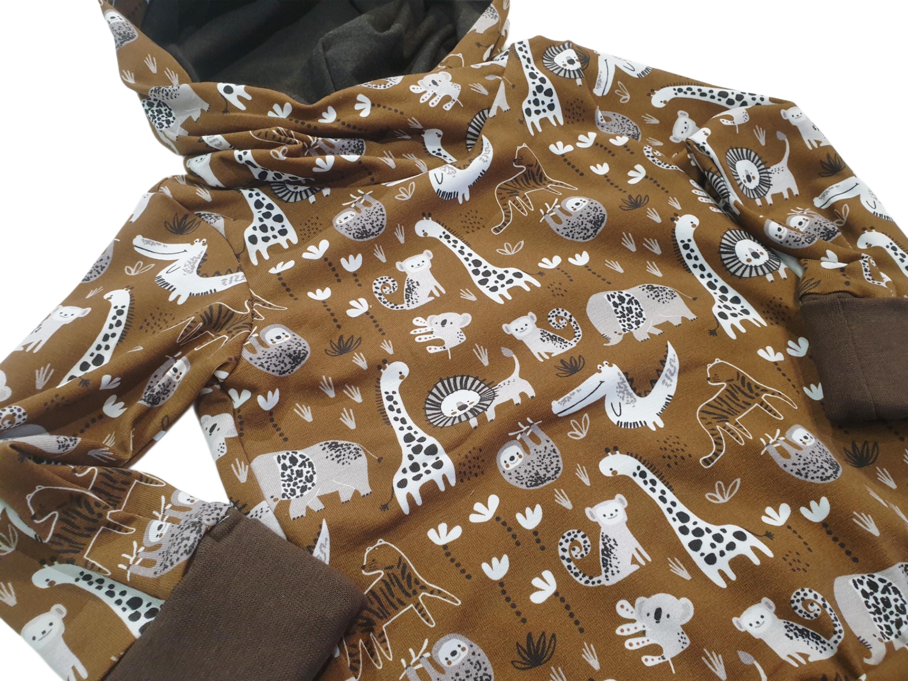 Super nice hoodie sweater with long sleeves and a hood to match the trousers, comfortable, cozy and fluffy, no pinching. The sweater is super cool and trendy with a simple cut. The combination of selected fabrics is perfect, there is nothing more comfortable and softer. When choosing, you should choose the actual size of your child. The sweaters are generously cut! In the smallest sizes, the cuffs on the neck have a side flap, which makes them comfortable to put on and take off. Please note that our products are handmade and are made to customer requirements, which ensures that each product is unique. Furthermore, the editions are STRICTLY LIMITED to ensure that you receive a unique product that not everyone has. You are purchasing a product that is made in Germany and is not a mass product. You will only receive the product from us at trade fairs such as Baby Welt, at creative markets and exclusively on Amazon in a limited edition! from Atelier MiaMia