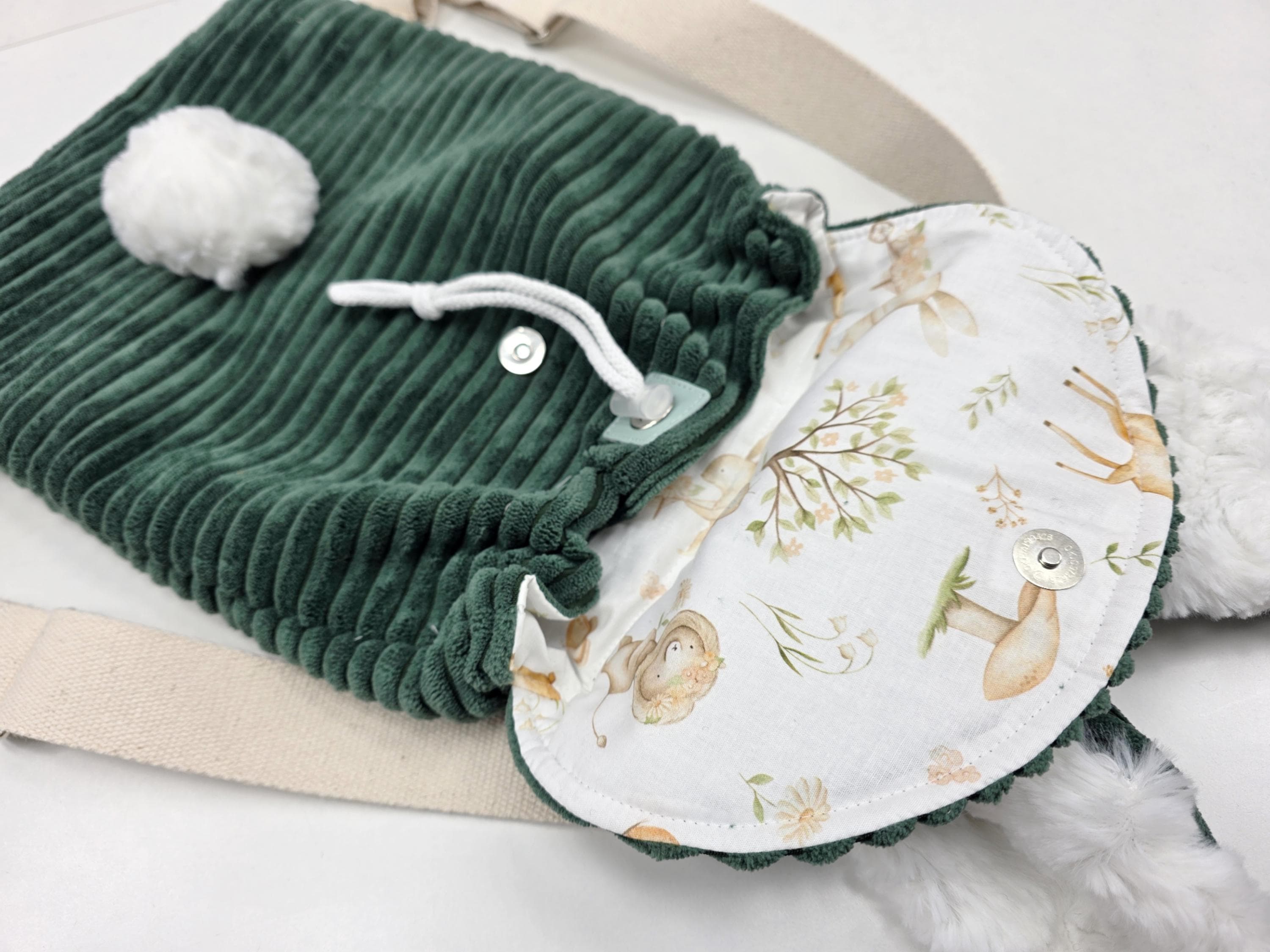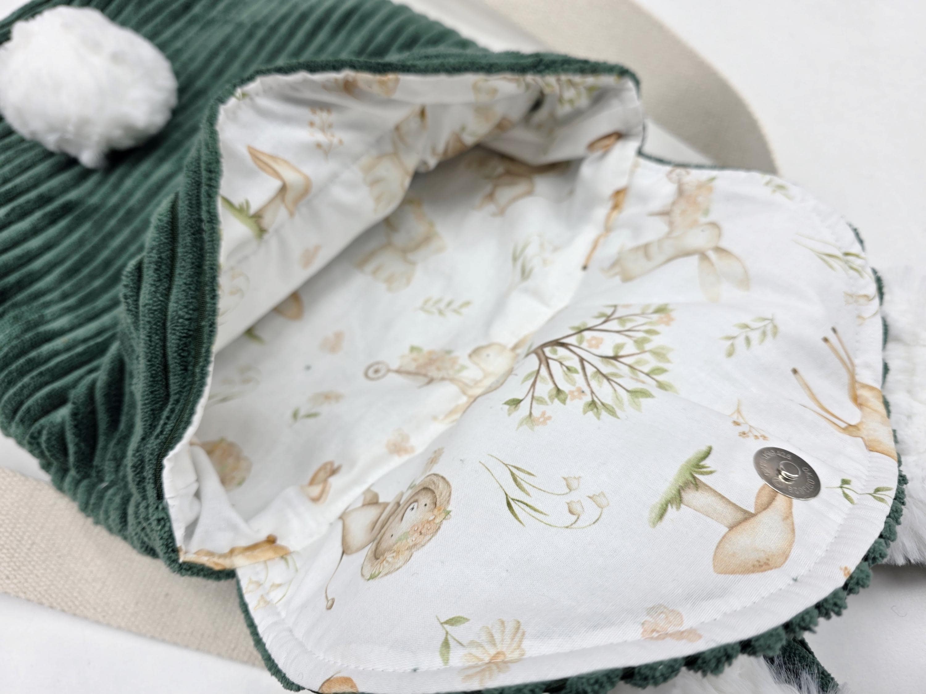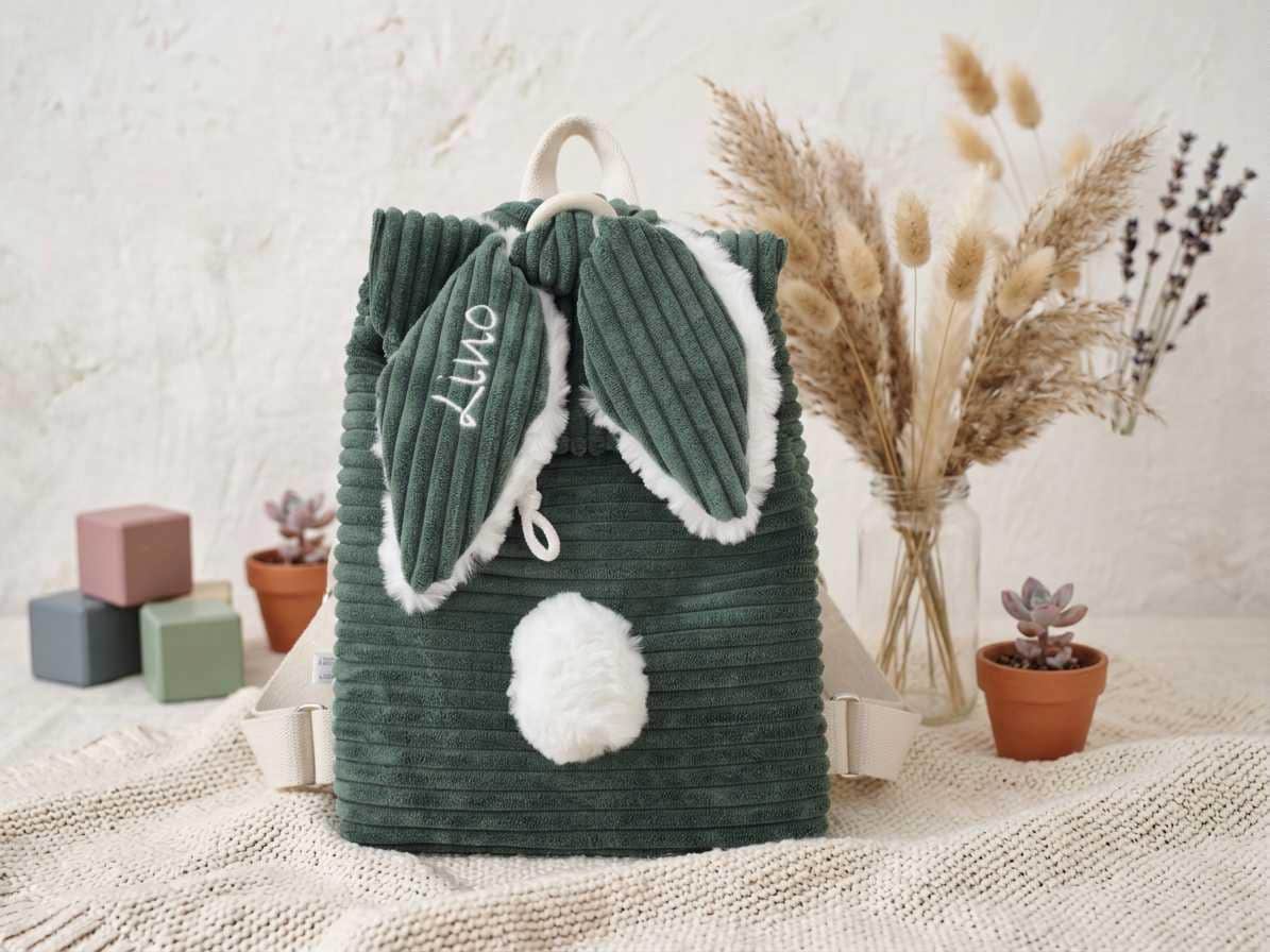 Aus weichem Cordstoff gefertigt und mit flauschigen Hasenohren & Puschelschwänzchen verziert, wird er schnell zum absoluten Lieblingsstück deines Kindes.