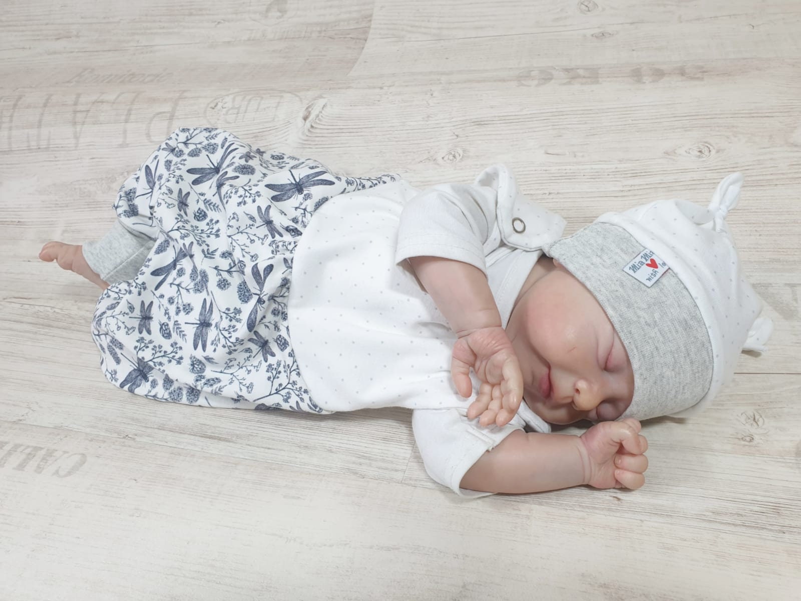 Great little romper by the slightly longer cuffs it fits longer is super comfortable and pleasantly soft. With it a small cloth and a beanie can be ordered.